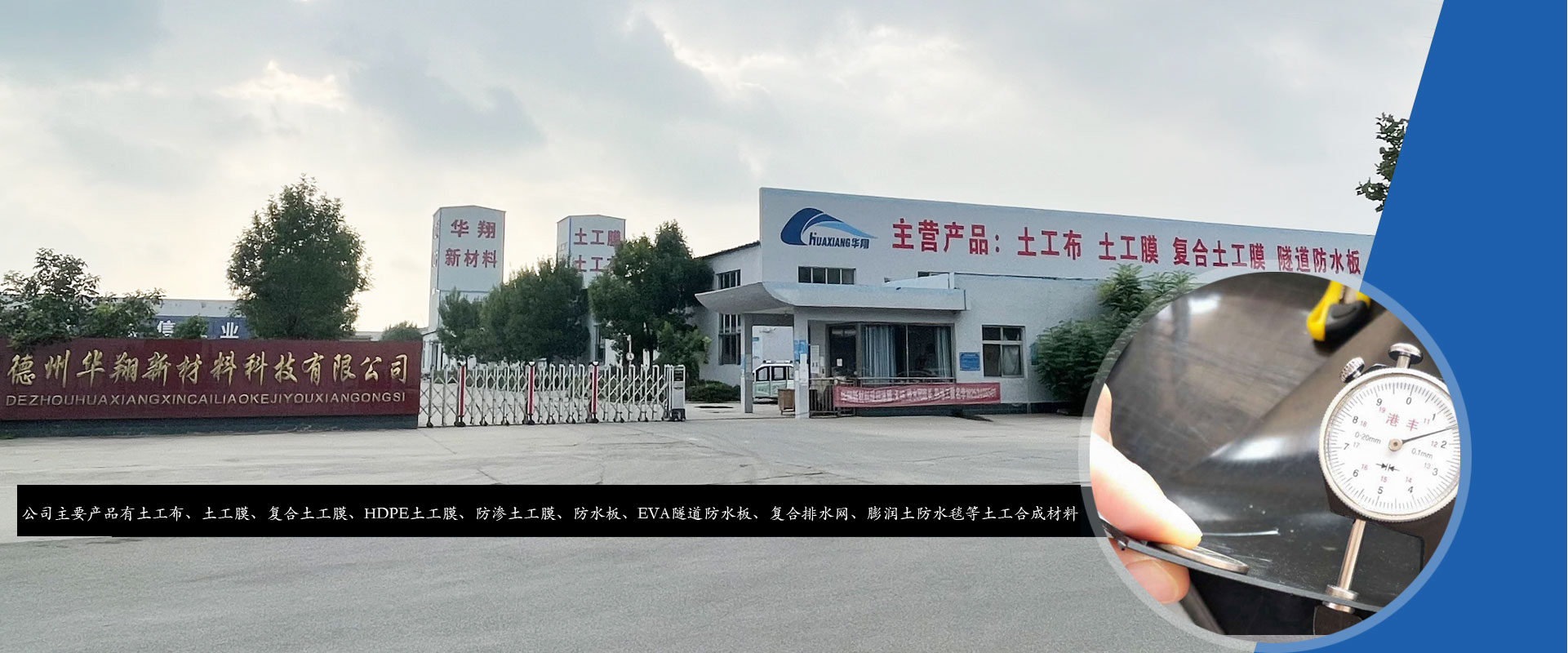 德州華翔新材料科技有限公司位于魯西北著名的歷史名城,西漢大文學家東方朔故里-德州市。公司占地50畝,現有員工100人,總投資5068萬元。主要生產設備由德國、意大利引進,是一家集土工材料、地毯生產、科研、開發于一體的大型骨干企業。 華翔公司始終認為為顧客創造價值,讓顧客的工程更優秀,是我們永遠的責任。公司主要產品有地毯、長(短)絲無紡布、HDPE土工膜、LDPE土工膜、EVA隧道防水板、土工膜、復...